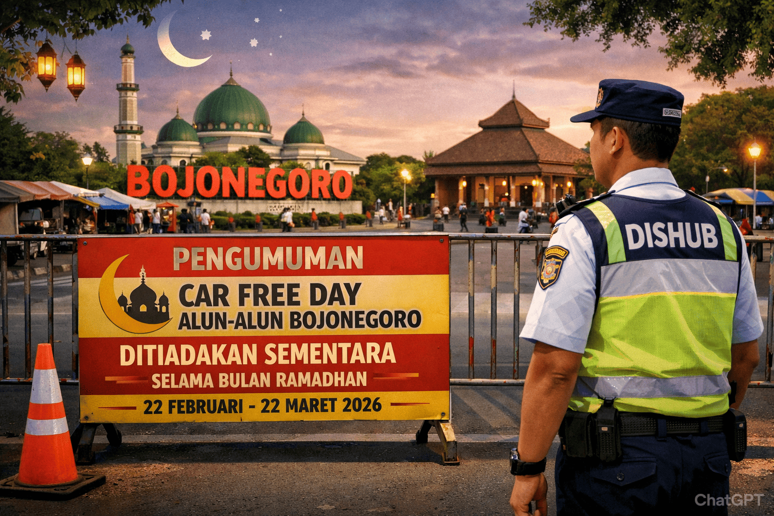 Huluhilir.com – Kegiatan Car Free Day (CFD) di kawasan Alun-Alun Bojonegoro dipastikan berhenti sementara selama bulan suci Ramadhan 1447 Hijriah/2026 Masehi. Kebijakan tersebut diumumkan oleh Dinas Perhubungan Kabupaten Bojonegoro sebagai bagian dari upaya menghormati umat Muslim yang menjalankan ibadah puasa.